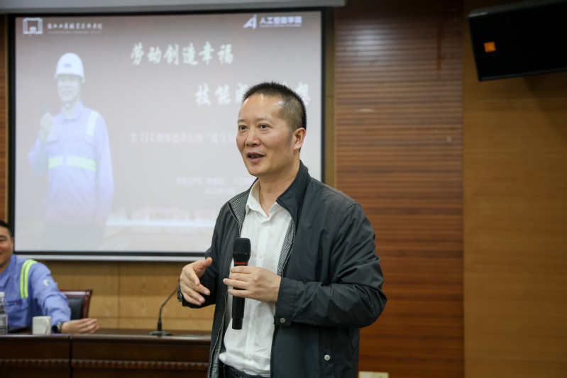 10月22日下午,由学工部(学生处)主办、人工智能学院承办的第114期厚德讲坛暨“我与大国工匠面对面”主题活动,在中和楼1007报告厅举行。全国劳动模范、全国道德模范、大国工匠年度人物、全国技术能手竺士杰受邀担任主讲嘉宾,校党委委员、组织部(统战部)部长任一波,学工部(学生处)副部长董艳和人工智能学院相关领导及100余名师生现场参与活动,人工智能学院党总支书记张青波主持。