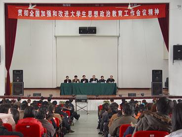 | 为落实中央16号文件和全国加强和改进大学生思想教育政治工作精神, 加强和改进我院大学生思想政治教育工作,2月23日,我院召开“贯彻全国加强和改进大学生思想政治教育工作会议精神”学习动员会,学院全体教职员工和百名学生干部参加了会议。 会上,陈国方书记传达了胡锦涛总书记等中央领导同志重要讲话精神,阐述了加强和改进大学生思想政治教育工作的重要性和紧迫性,并结合学院思想政治教育实际谈了几点看法。陈书记认为,学习政治理论,学习中央精神,最可贵的是联系实际,落到实处。中央16号文件和全国会议上胡锦涛同志的讲话,对大学生思想政治教育工作谈得非常的现实,现在就是要我们具体研究如何落到实处的问题。陈书记提出通过两课教育、形势政策教育以及校园文化建设,通过深入细致的思想政治工作和心理教育,努力解决大学生实际问题,真正使思想政治教育既教育人、引导人,又关心人、帮助人,为大学生成长成材创造条件。 张百章院长在会上着重就如何加强和改进我院大学生思想政治教育工作,提出了自己的想法。他认为,要做好这项工作,就必须在深入学习领会中央文件精神、统一思想认识上下功夫,在求真务实上下功夫,在坚持以人为本、真心诚意为学生办实事好事上下功夫,把工作做深、做细、做透、做实,努力开创学院思想政治教育新局面。张院长重申了教师应该怎么做、怎么教书、怎么育人的问题,并提出思想政治教育工作的五个措施和途径,即“灌、管、通、引、带”。灌即灌输,即强制性和针对性地向学生灌输先进思想和科学理论;管即从严管理,既要靠耐心细致的思想教育,又要靠科学规范的严格管理,从而提高思想政治教育的实效性;通即沟通,它贯穿于思想政治教育的全过程,在进行思想政治教育的过程中应加强沟通的作用,增强思想政治教育的亲和力;引即引导,坚持正面引导的原则,发挥思想政治教育的导向作用。对学生时常进行正面教育,积极加以引导;带即教师的示范带头作用,坚持教师的言传身教,突出思想政治教育的示范性。 这次动员会的召开适逢中华民族象征美好团圆的元宵佳节,也是我院新学期第一次政治思想学习会,对我院今后开展思想政治教育工作具有重要的指导作用。 |