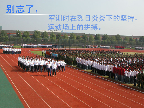 记得军训时在烈日炎炎下的坚持,运动场上的拼搏,共同战胜SARS的信心;记得在红五月歌会上竭尽全力的大合唱,辩论赛上的唇枪舌剑,技能运动会上的丰采斑斓。忘不了义务支教时那些山里的孩子,走进社区时的孤寡老人,聋哑学校的学生们,正如忘不了期末考试前的挑灯夜读,忘不了在寒冷的冬季在操场打雪仗尽情奔跑的执著。