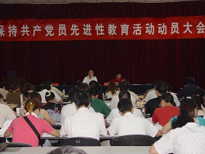 根据学院党委关于开展保持共产党员先进性教育活动总体安排,我院于2005年8月1日召开了保持共产党员先进性教育活动动员会暨专题报告会。会议由学院副院长姚奇富主持,全体教职工党员参加了本次会议。