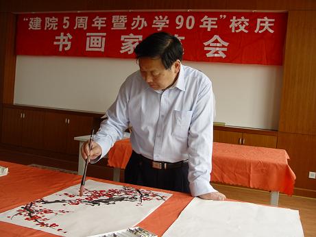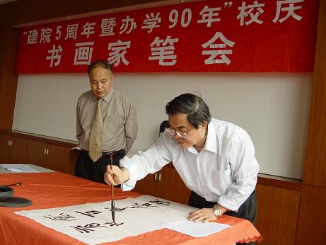 | 4月9日上午,我院“建院五周年暨办学90年”校庆系列活动之一的书画家笔会在图书馆三楼会议室拉开帷幕,朱颖人、曹明华、朱国才等中国著名书画家亲临我院参加了笔会,开展了现场作画、书法交流活动,为我院“建院五周年暨办学90年”校庆增添了浓厚的文化气息。