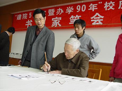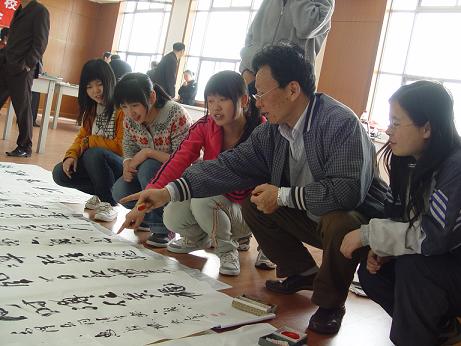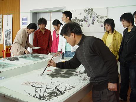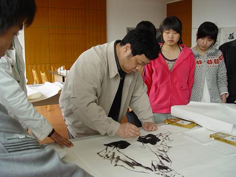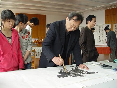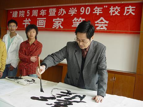 | 4月15日上午,我院“建院五周年暨办学90年”第二次书画家笔会在图书馆三楼会议室顺利举行,周律之、杨东标、江吟、梅则伟、陈亚非、李羡唐、王复才、陈启元、鲁峰、来仲棣等11位宁波书画家参加了本次笔会,开展了现场作画、书法交流活动,吸引了学院众多学生和老师前来观摩和学习,热闹的书画交流场面给校园增添了浓厚的文化气息。