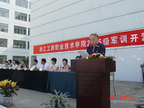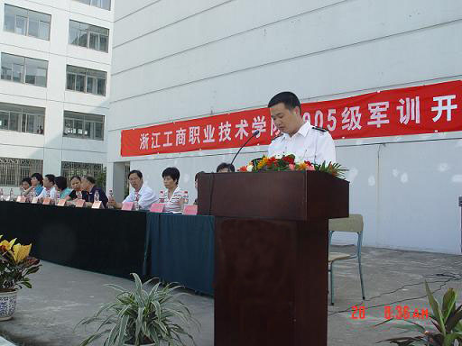 开营仪式上,学院党委书记陈国方作了讲话,他指出,军训是全民国防教育的一项基础工作,是大学生活的一段特殊人生历程,对于培养和提高学生的素质发挥着其他教育形式不可替代的积极作用。学生要以饱满的热情、旺盛的斗志、顽强的毅力、威武的军姿、凌厉的气势来展现工商学子的勃勃生机和奋发向上的精神风貌,展现新一代大学生的风采,为自己的大学生活和整个人生历程增添激越昂扬的华彩篇章。陈书记希望参训的学生自觉遵守军训的各项要求,把军训成果转化到创建优秀高职院校的各项工作中去,以实际行动为学校的评估、为学校的进一步发展作出贡献,并为下一级新生树立好的榜样。