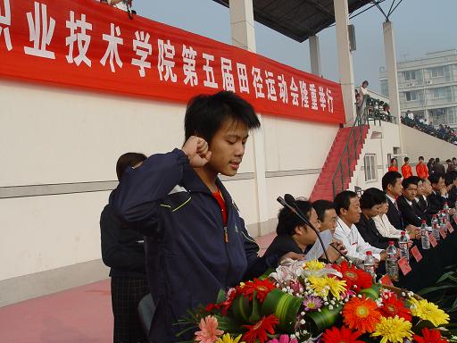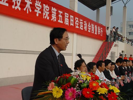 入场仪式结束后,院长蔡泽伟致开幕词,蔡院长希望所有的运动员积极参与,发扬“更快、更高、更强”的奥运精神,奋力拼搏,公平竞争,严格遵守运动秩序,严格服从裁判,在努力争取优秀运动成绩的同时,展示新一代大学生应有的风貌!希望所有的裁判员认真负责,秉公执法,公正裁判,用你们的辛劳和汗水推动学校体育事业的健康发展,加快学校素质教育改革的步伐!希望所有的工作人员要坚守岗位,热情服务,切实保证运动员的安全,保证运动会的顺利进行!祝本次运动会圆满成功!