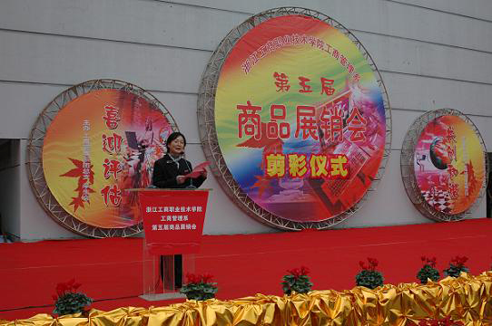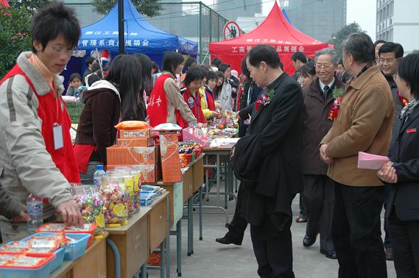 | 12月13日下午2:30,工商管理系第五届商品展销会开幕式剪彩仪式在博学楼后举行,评估组全体专家出席开幕式并剪彩。开幕式由工商管理系系主任徐盈群主持,学院党委书记陈国方致祝贺词,院长蔡泽伟为获本届商品展销会策划奖的同学颁奖。本届商品展销会将持续两天,活动内容包括商品展销、商品拍卖、促销和网上商品交易。