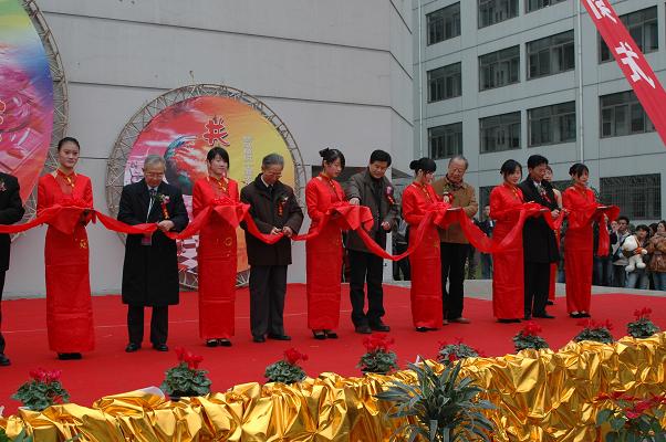 评估专家为商品展销会开幕式剪彩