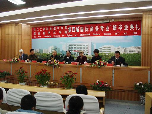| 12月21日上午,我院第四届“中澳合作国际商务”班毕业典礼在国际会议中心隆重举行。学院党委书记陈国方、院长蔡泽伟、霍姆斯格兰学院代表PIP、GREG、学院学生处处长韩包海、国际交流与合作中心主任邱素芬、主任助理王联晓等领导出席典礼。