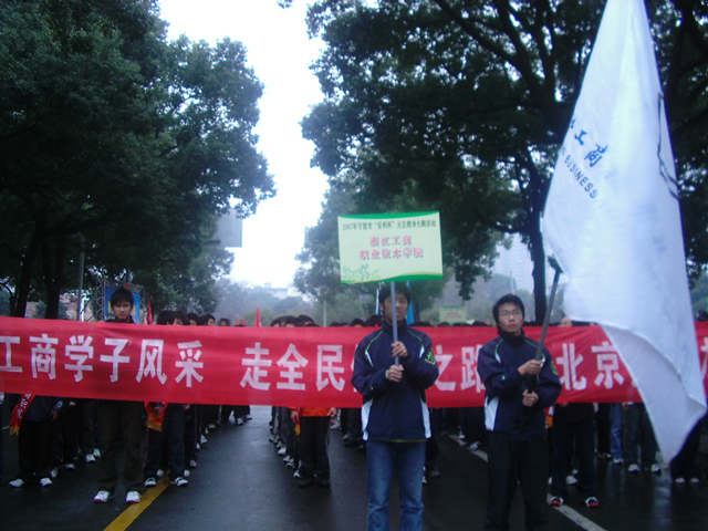 | 新年元旦,由宁波市体育局、教育局、中共宁波市直属机关工作委员会主办、安利(中国)日用品有限公司宁波分公司协办的2007“安利杯”宁波市元旦健康长跑活动拉开帷幕。每支100人次组成的一百支“全民健身与奥运同行”长跑队伍场面壮观,宁波各大院校的大学生也加入了此次长跑行列。在现场,选手们排着整齐的队伍,在旗手引领下喊着口号慢跑前进。