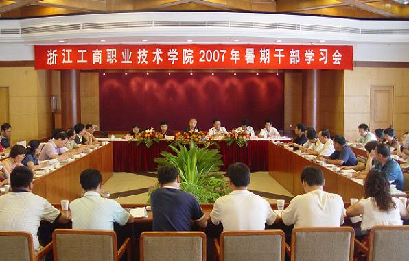 为了总结一学年来学院的各项工作,部署下半年工作重点,探讨各分院下一阶段工作目标及发展方向,8月22日至24日,学院举行为期三天的2007年暑期干部学习会。学院党委书记陈国方、院长蔡泽伟、副院长姚奇富、王国良、党委副书记应金萍、纪委书记李振祥出席会议,全体中层干部参加了会议。