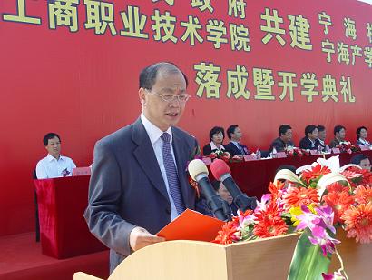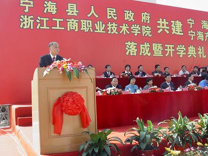 | 10月28日,浙江工商职业技术学院宁海产学研基地一期(宁海机电学院)落成暨开学典礼在宁海隆重举行,教育部全国产学研合作教育协会会长朱传礼、省委教育工委副书记、省教育厅副厅长沈敏光、省商业集团公司党委书记、董事长何剑敏、党委副书记、副董事长倪桂英、省政府文教卫处处长潘捷军、市政协副主席胡建岳、宁波市关工委主任邵孝杰、宁海县县委书记林静国、宁海县县长王剑侯等省、市、县各部门领导出席本次庆典大会,出席典礼的还有省、市有关部门领导,来自省、市部分兄弟院校的同仁,宁海县有关局、办、街道、乡镇、村的领导,校企合作紧密型企业、模具协会、建设单位领导,以及来自国家、省、市、县新闻媒体的朋友和校友代表,庆典还收到了宁波市模具行业协会、宁波市机床设备行业协会等单位发来的贺信。