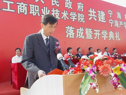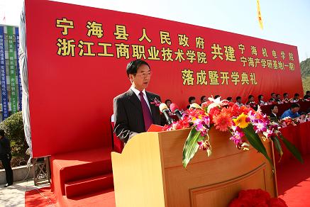 宁海县县长王剑侯代表宁海县委、宁海县人民政府,对各位领导、各位来宾的到来,以及首批入驻宁海机电学院的师生们,表示热烈的欢迎!对为宁海机电学院建设付出辛勤劳动的同志们,表示衷心的感谢!王县长在致辞中说,宁海县委、县政府始终坚持科学发展主题,走“以特取胜”的产业发展之路,精心培育形成了六大工业特色产业。其中模具产业相继荣获“中国模具生产基地”、“中国模具产业基地”等称号。此次与办学历史悠久,教学力量雄厚、拥有强大的技术理论和研发优势的浙江工商职业技术学院合作成立的宁海机电学院顺利落成并开学,将使学校的高职教育优势和宁海县的模具产业优势珠联璧合、相得益彰,形成新型的产学研一体化的发展模式,必将产生很强的生命力,成为全国一流的产学研基地典范,为宁海、浙江乃至全国输送更多更好的高素质应用型人才。