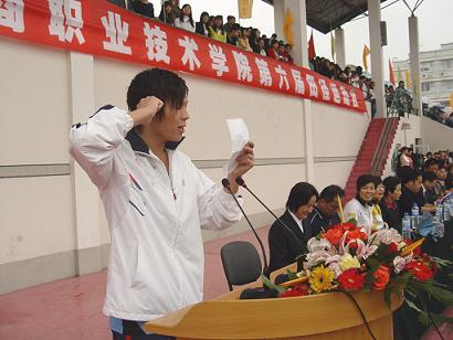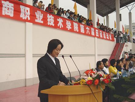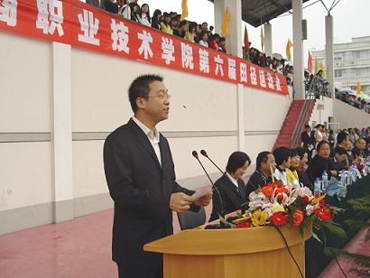 入场仪式结束后,院长蔡泽伟致开幕词,蔡院长说一年一度的田径运动会是全校的体育盛事,是广大师生展示风采、促进交流的舞台,更是对全校师生道德品质、思想作风、精神面貌和校风校纪的一次全面检阅。在过去的一年里,全体师生在学习上、工作上都取得了长足的进步,学校的教育教学工作赢得了社会的广泛关注和高度赞扬。学校不仅顺利通过了教育部高职高专院校人才培养工作水平优秀评估,在上周还隆重举行了学校宁海产学研基地(宁海机电学院)的落成典礼。在本届运动会期间,蔡院长希望全体运动员能以高昂的斗志和顽强的精神,积极参赛,赛出风格、赛出成绩,为班级争光。比赛时要严守纪律,遵守规则和赛程规定,同时注意过程安全。希望全体裁判员和工作人员,要严格按规程操作,做到公平、公正,以细致的工作为运动会做好服务工作,维护赛场纪律,保证赛场安全,让赛场成为师生情感互通的一个场所,让赛场成为别样的教室。 希望全体同学在运动会期间能自始自终关心关注本班、本院的比赛和成绩,严格遵守纪律,让比赛成为凝聚人心的一堂课。祝本次运动会圆满成功!