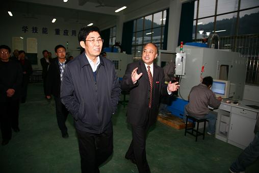 秋风瑟瑟,挡不住巴音朝鲁书记兴致勃勃的脚步。在我校党委书记陈国方和宁海县委书记林静国、县长王剑侯等领导的陪同下,巴音朝鲁书记参观了产学研基地展览馆、实训室和现代制造中心,并看望了正在实训室工作的同学。我校领导向巴音朝鲁书记介绍了学校建设与发展的历史,宁海县委县政府对学校办学的支持,以及我校依托宁海模具等产业与宁海县合作建立产学研基地(宁海机电学院),为宁海及宁波地方经济服务的情况。