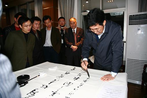 随后,巴音朝鲁书记欣然提笔,为宁海产学研基地题词:“办好产学研基地,培养创新型人才”。