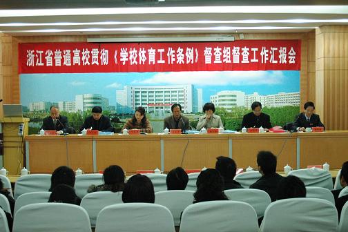 | 11月30日,由浙江省大学生体协副秘书长苏亚平教授带队的省教育厅贯彻《体育工作条例》督查组专家一行五人莅临我校,对我校贯彻《体育工作条例》工作进行评估。