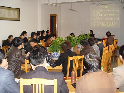 | 12月13日,学校召开党委中心学习组(扩大)会议,专题学习十七大精神。学习会特邀宁波市委党校哲学教研室主任,宁波市哲学学会秘书长,浙江省十二次党代会代表郑湘娟教授作学习十七大精神辅导讲座。会议由蔡泽伟院长主持,全校中层及以上干部参加了辅导学习。