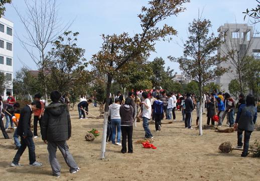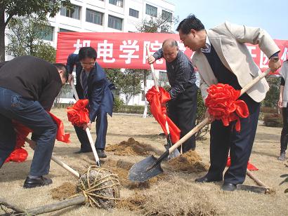| --------机电工程学院组织开展“3-12”植树活动 3月12日植树节,机电工程学院组织师生在学校南区新开辟的“育林园”开展了植树活动,党委书记陈国方、院长蔡泽伟等校领导出席了植树节活动,现场为“育林园”揭牌并开土,学校教师、学生共90多人参加了此次植树活动。
