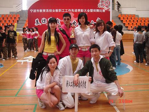 | 4月24日,由宁波市教育局妇委会、宁波市教育工会女职委组织的市教育系统“美你秀我”街舞比赛在效实中学体育馆隆重举行,来自市区的22支舞蹈队参加了本次比赛。经过激烈角逐,由我校王国芬老师担任领队,潘玲、徐立力、戴艳、沃莹莹、赵进军、毛可斌等老师表演的参赛节目以市高校第一、教育系统第二的高分荣获本次大赛金奖。