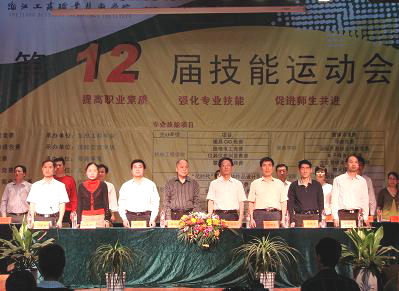 | 5月7日下午,学校第十二届技能运动会开幕式在博学楼报告厅隆重举行,党委书记陈国方、院长蔡泽伟、副院长姚奇富、王国良、党委副书记应金萍、纪委书记李振祥、院长助理俞位增等校领导,本届技能运动会组委会全体成员及部分师生参加了此次开幕式。