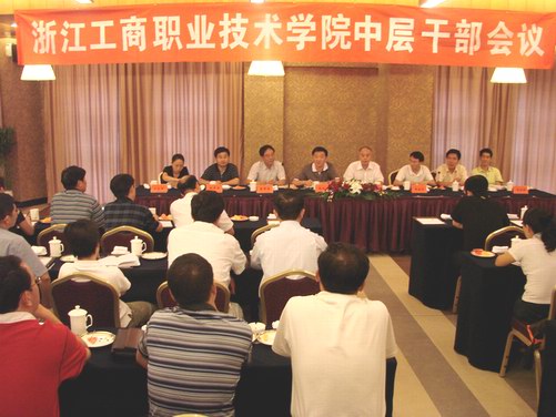 | 8月28日,学校新学期中层干部会议在宁波嘉和大酒店举行,省商业集团公司党委副书记陈向明、组织人事部副部长黄胜泉及我校党政领导出席会议,全体中层干部共40余人参加了此次会议。 会上,院长蔡泽伟首先传达了全省高职高专书记(校长)读书会的会议精神,主要是省委教育工委书记、省教育厅厅长刘希平同志的讲话精神。本次读书会的主题是“工学结合、校企合作”。 “工学结合、校企合作”是个大课题,我省高职院校已做了大量的工作,它是高职院校发展的路径选择;应成为我省建设高职教育强省的突破口。刘希平同志要求:1、要统一思想、加强意识和责任;2、要科学规划,深入理清“工学结合、校企合作”的思路;3、要完善组织,充实力量,把它摆到学校的主要议事日程上;4、要改进自我,不断增强“工学结合、校企合作”的吸引力;5、要加强领导,调动各方面的积极性特别是广大教师的积极性。这其中关键是完善评价制度和相关工作机制。 同时,结合我校工作实际,蔡院长就如何贯彻落实“书记(校长)读书会”的精神提出了几点思路:1、办学体制机制要真正做到你中有我、我中有你,使企业、行业真正参与学校的教学工作。2、加强资源整合,形成合力。3、要走规模化、集团化、连锁化之路。从而,更好地推动我校的专业建设、课程改革、师资队伍建设、实训基地建设和可持续发展。