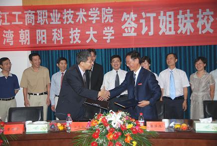| 9月23日上午,我校与台湾朝阳科技大学签订姐妹校合约仪式在至诚楼三楼会议室隆重举行。台湾朝阳科技大学江支弘副校长、廖经芳研发长和研发处国际事务中心组员陈宜婷女士一行三人专程从台湾来我校参加这一合作交流的盛事。我校党委书记陈国方、院长蔡泽伟、副院长姚奇富等校领导及相关部门负责人对宾客的到来表示热烈欢迎。