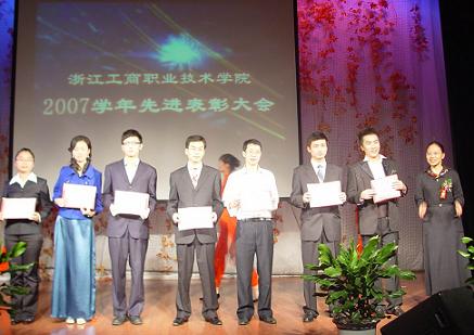 | 10月29日下午,学校2007学年先进表彰大会在博学楼报告厅隆重举行。党委书记陈国方、院长蔡泽伟、党委副书记应金萍、纪委书记李振祥等校领导出席了会议,院办、宣传部、教务处、学生处、团委负责人、各分院院长、学生工作负责人、辅导员、班主任代表、学生代表等参加了此次表彰大会。