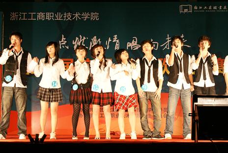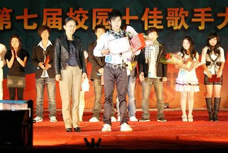| 11月12日晚,由团委主办的校第七届校园歌手大赛总决赛在田径场隆重举行。大赛专门邀请了浙江省著名歌手、宁波市歌舞团优秀演员周玛菲、杜萍、王嵩等嘉宾及我校声乐指导教师樊洁等老师担任评委。校党委副书记应金萍出席了大赛,相关部门负责人及各分院学生工作负责人、团总支书记和学生会秘书长及兄弟院校的嘉宾参加了本次大赛。