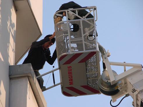 | 一场“大火”突降我校学生公寓楼,个别寝室被“大火”封锁,很多学生被“困”,情况万分危急。我校领导现场指挥迅速启动应急疏散预案,紧急开展“火”灾救援,疏散受困学生……11月19日,我校联合鄞州区消防大队古林中队和海曙消防大队共同举行了一场大型消防逃生演习。