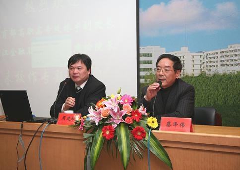 会上,教育部高职高专处林宇副处长首先为我校教师作了题为《关于我国高职教育的宏观思考》的主题报告。林副处长在回顾了我国高等职业教育发展的历程后,分析了当前高职教育的规模已出现饱和,指出未来的高职教育领域的竞争将更加激烈,高职院校应突出自身办学特色,服务地方经济建设,提升产学结合的紧密度,建立自身的核心竞争力,在激烈的竞争中脱颖而出。他还为大家具体阐述了高职教育具有里程碑意义的2006年16号文件的制订过程及内容,希望近期高职教育能突出职业特色和产学结合的重要性。