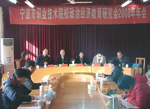 | 12月6日,宁波市职业技术院校政治经济教育研究会2008年换届及年会在我校至诚楼二楼会议室召开。我校党委书记陈国方及宁波大红鹰学院孙惠敏书记、林长兴副书记,浙江纺织服装职业技术学院陈光副书记,宁波天一职业技术学院程舟群副书记等领导出席会议,宁波市各高职院校社科部主任及思政教师代表共35人参加了会议。