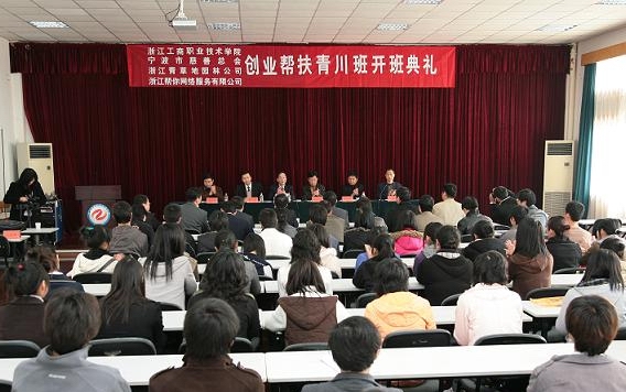 这10位青川学员也表示会珍惜在学校学习的机会,努力掌握创业知识和技能,在争取实现自己的创业梦想的同时,不辜负大家的期望,帮助家乡重建,为社会发展作出贡献。 “青川创业班”项目是由我校和宁波慈善总会、浙江青草地园林市政建设发展有限公司、浙江帮你网络服务公司等单位共同出资赞助,是我校推进服务型教育体系建设的试点项目,也是我省第一个大专层次的扶助灾区人才培养项目。首批青川学员共10人,是从四川青川县自愿报名的108名高中文化程度的志愿创业者中经过 “创业帮扶活动”考试、体能测试、面试等环节精选出来的。 学习期间,学校针对这10名“青川创业班”学员的实际情况量身定做了《创业人才培育方案》,配备了专职辅导员,还为他们特别设计了两年的以创业精神培养、创业理论学习、综合素质提高、商业事业拓展及创业能力锻炼等五个方面为内容的课程体系。开班后,学员将归属于学校EPV中心,依托商务学院市场营销专业,主要学习创业所需课程,其中部分课程与在校大学生一起完成,部分课程将特别邀请各大企业老总为他们亲自授课传授经验。2011年结业后,创业苗子还将得到赞助方的充分支持,包括对优秀人员提供部分创业资金等,并鼓励其回家乡参与重建。 目前,我校已把创业教育纳入到了各专业的人才培养方案中,注重对全体学生进行创业教育,培养学生的创业创新能力,形成了一个课内与课外相结合、理论与实践相结合的创业教育体系。此次与企业联手开办“青川创业班”,是我校改革创新创业人才培养模式的一次全新的突破,是有效帮助企业家物色第二梯队、帮助创业苗子成功创业的双赢途径;也是我市开展“万人助学”、“献爱心、送温暖”等帮扶活动以来,又一次在帮扶形式上的创新。