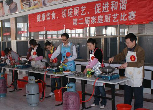 纪委书记兼工会主席李振祥宣布了本次比赛的规则。随着主持人一声令响,比赛正式开始,整个赛场忙碌着各个参赛选手的身影,交织着锅、碗、瓢、盆的各种声响,溢满了各色菜肴的香味。尽管参赛的教工们不是专业厨师,但炒、炸、烹、煮样样在行,经过他们的精心烹调、巧手点缀,每道菜肴可谓是色、香、味俱全,令观众们交口称赞、垂涎三尺。