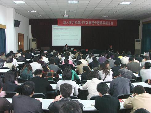 | 4月17日下午,学校在至诚楼一楼会议室举行了深入学习实践科学发展观专题辅导报告会,特别邀请了省委学习实践活动第11指导检查组副组长、省委教育工委委员、省教育厅副巡视员夏建勇来我校作了题为《用科学发展观指导我们做人做事》的辅导报告。全体教职工党员参加了本次报告会。