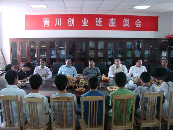 姚奇富副院长首先在会上讲话,他说,突如其来的大地震,给我们国家造成了巨大的经济损失和人员伤亡。但灾难终将逝去,前面是未尽的事业,我们活着的人,我们的同学,要认真学习,加强实践,培养创业精神,提高创业能力,为灾区重建、为社会发展贡献力量,这是对逝者最好的纪念;林斌董事长也在会上指出,这场灾难,给灾区人民留下了难以抹去的记忆,但从中凸显的是中国人民永不磨灭的精神,“再大的困难也压不倒勇敢的中国人民”,压不垮我们的同学,希望同学们更加努力地学习;学校教务处、商务学院相关负责人、教师也和“青川创业班”的同学们进行了面对面的交流,询问了同学们学习、生活等各种情况。
