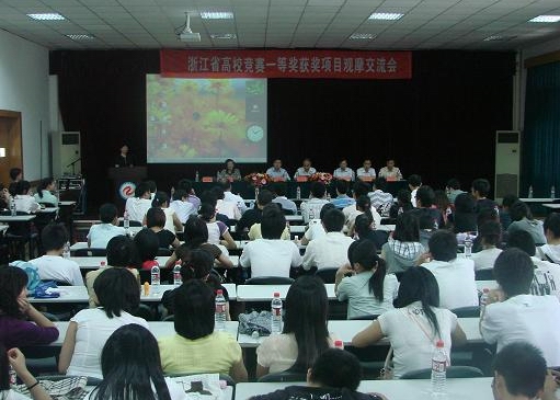 目前,如何培养学生创新创业意识,提高学生职业技能和创业创新能力,是各高校共同面临和急需解决的课题。举办挑战杯创业大赛和企业管理案例分析大赛等各级各类竞赛是解决上述问题的有效途径。为此,浙江省企业管理研究会发起并举办了“浙江省高校竞赛一等奖获奖项目观摩交流会”,希望借此为各高校构建交流平台,充分展示大赛硕果,强化大学生创业意识,提高创业能力。本次宁波站的交流会共有浙江林学院、浙江理工大学、浙江水利水电专科学校及我校等四支获奖团队参加展示,宁波大学、宁波工程学院、宁波大红鹰学院、浙江纺织服装职业技术学院等200余位师生参加了观摩交流。