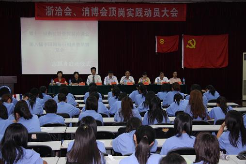 | 6月4日,第十一届浙江投资贸易洽谈会、第八届中国国际日用消费品博览会志愿者启动仪式在我校至诚楼一楼会议室举行,蔡泽伟院长和宁波市对外贸易经济合作局对外贸易发展处刘舟群处长、对外贸易信息中心黄立军主任等领导及来自我校商务学院的400多名学生志愿者参加了本次启动仪式。