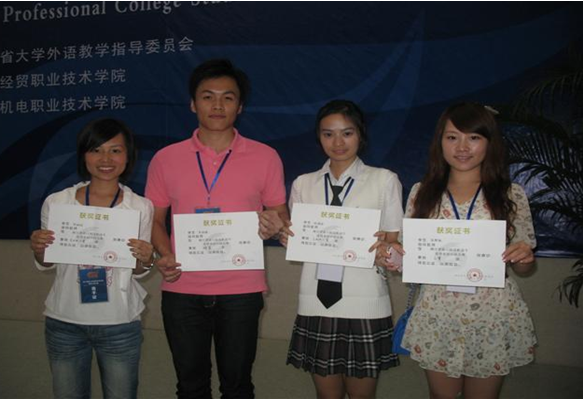 | 近日,由浙江省大学生科技竞赛委员会主办的“高教杯第六届浙江省高职高专实用英语口语大赛”在杭州落下帷幕。本次大赛共有来自全省52所院校的169名学生参加。我校季润森同学以全省第一名的成绩获得特等奖,并将于11月代表浙江省赴北京参加全国总决赛。这是继2006年我校胡厦楠同学获浙江省特等奖后,我校选手在该项赛事中取得的又一成功。此外,我校选送的其他三位参赛学生也全部获奖,侯剑波同学夺得专业组二等奖, 曹丽丽和金梦如也分别获专业组和非专业组的三等奖,奖项份量和获奖面均位居全省同类院校首位。