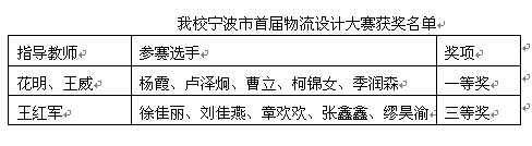 近日,由宁波市教育局主办的首届“涌金杯”物流设计大赛顺利落下帷幕,我校经管学院2支参赛队经过激烈的角逐,分别取得了一等奖和三等奖的优异成绩。 本届大赛聚集了在甬高校物流专业的精兵强将,是一次对物流专业参赛选手实际动手能力、策划能力、协调组织能力的大比拼。在相关部门的共同努力下,我校经管学院物流专业群从5月份开始筹队,历经了整整四个月的赛前集训,最终选派了由10名选手组建的2支参赛队参加比赛。最终我校选手凭借优异的专业技能水平以及良好的心理素质一路过关斩将,一举夺得桂冠。具体获奖名单如下: