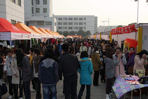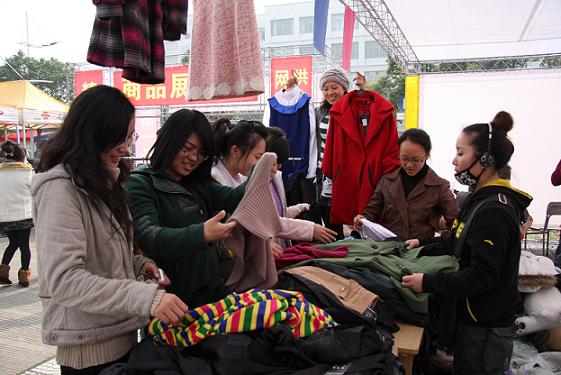 展销会现场,各摊位的学生和外来商家们各就各位,竞争激烈,吆喝、解说、现场演示等各种营销招术纷纷出场。会场上展出的商品有家居用品、礼品、装饰品、办公用品、体育休闲用品、箱包鞋帽、纺织服装用品、五金制品、电子电器、食品、玩具等10多种。热闹的场面吸引了来自不同专业的5000多名学生、老师、附近社区居民和外来商业企业人士。