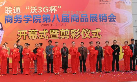 | 12月2日至4日,“联通沃3G杯”第八届商品展销会在学校博学楼后隆重举行,党委副书记应金萍、纪委书记李振祥等校领导、特邀嘉宾联通公司副总经理王凌和学校相关部门负责人出席了开幕式暨剪彩仪式。