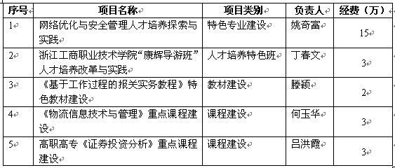 | 近日,根据宁波市教育局公布的《关于公布宁波市应用型专业人才培养基地2009年度建设项目及经费安排的通知》(甬教高〔2009〕414号)文件,我校“网络优化与安全管理人才培养探索与实践”等5个项目被确定为宁波市应用型专业人才培养基地2009年度建设项目。具体项目见下表: