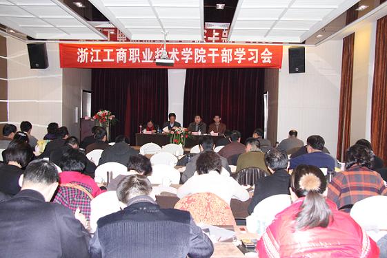 新年伊始,寒假在即,为进一步谋划好学校年度工作思路及发展长远规划,确定有效的工作指导方针和措施,强化工作的计划性、针对性和时效性,顺利完成今年学校机构改革实施任务,学校于1月21日至22日,举行了为期二天的2010年寒假干部学习会。院长蔡泽伟、副院长姚奇富、党委副书记应金萍、纪委书记李振祥等领导出席会议,全体中层干部参加了会议。全国高职高专院校人才培养工作评估委员会主任委员杨应崧教授应邀莅临会场作专题报告。