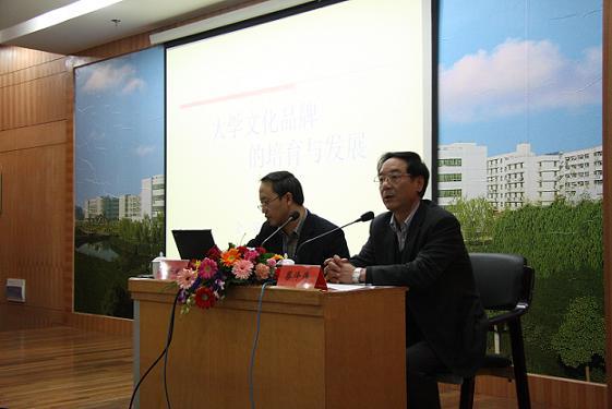 | 4月2日,杭州电子科技大学党委副书记金一斌应邀来我校作专题报告,他以《大学文化品牌的培育与发展》为主题,为在座领导及老师带来了丰盛的文化大餐。