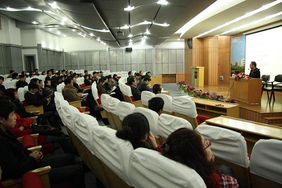 报告会由院长蔡泽伟主持,校领导、全体中层干部及相关教师参加了报告会。