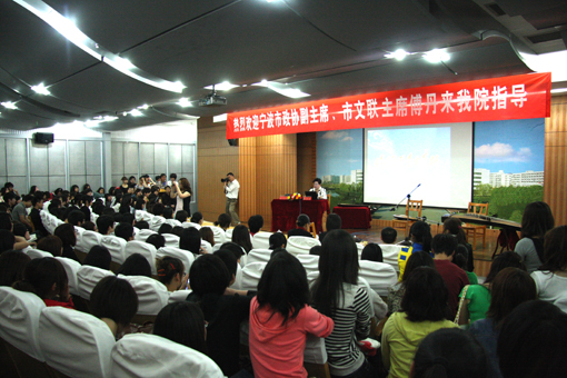 | 5月12日晚,宁波市政协副主席、市文联主席、市音协名誉主席,省音协琵琶专业委员会会长,国家一级演奏员傅丹女士作客我校,为我校师生带来了一场题为《琵琶名曲欣赏》的精彩论坛。