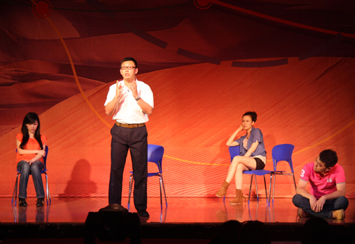 据了解,这部《心灵游戏》心理舞台剧是省话剧团60周年庆典的献礼之作,是根据毕淑敏的小说《心灵七游戏》之一“我的五样”改编的。剧中,一辆自驾游俱乐部的越野车在荒漠中抛锚,车上有患抑郁症的IT精英,有遭受性暴力的都市白领,有爱财如命的银行经理,有同性恋倾向的“北漂”。五个年轻人在一场心灵游戏的拷问下袒露襟怀,直指人生本质,使同学们在欣赏高雅艺术、品味经典、接受高水平艺术作品熏陶的同时,引发了对人生的思考。