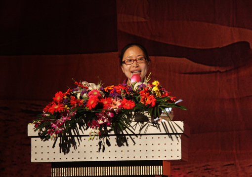 应金萍副书记首先代表学校对浙江省话剧团的领导和演职人员的到来表示热烈的欢迎,她指出:高雅艺术进校园活动,能正确引导大学生的审美趋向,陶冶大学生的思想情操,提高大学生的内在文化素养与综合素质,对高校校园文化建设具有积极意义。希望同学们通过欣赏高雅艺术进一步提升自己。