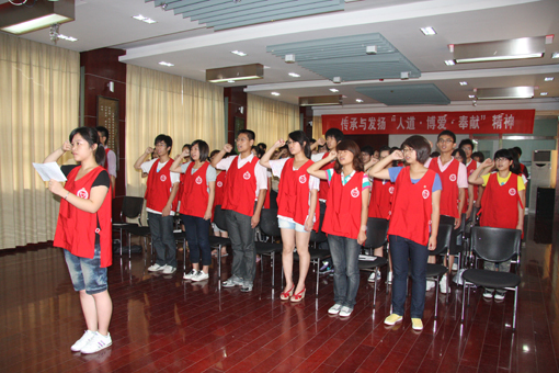 校党委副书记应金萍在会上发表讲话,她对宁波市红十字会对我校红十字志愿服务的大力支持表示衷心的感谢,对广大师生的辛勤工作表示亲切慰问,并指出我校红十字志愿服务基地的成立将为我校广大师生员工发扬人道主义精神提供一个平台,必将为促进宁波地区高校红十字事业的发展奠定良好的基础。同时,她希望我校的红十字会全体会员能认真遵守《红十字会章程》,不断加强组织自身建设,扎实开展相关工作,加大宣传力度,积极探索红十字工作与其他教育教学工作相衔接的工作机制,更好地推进和落实红十字志愿服务基地工作。 与会的红十字志愿者们还在会上举起右手庄严宣誓:“秉承人道、博爱、奉献的红十字精神,肩负社会的责任和崇高的使命,尽己所能,服务社会 ……”