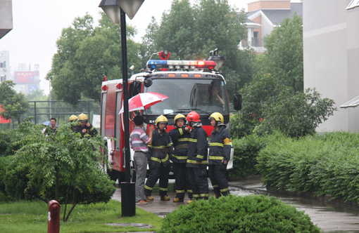 整个演习由发现火情,报警、组织逃生,消防队员灭火,信息反馈等环节组成,每个环节都有专人负责,使得整个演习场面能够紧张有序地进行。