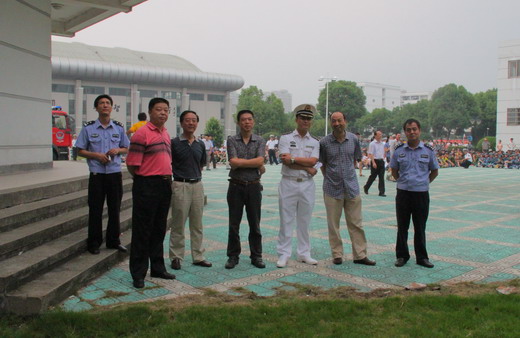本次消防逃生演练是由我校和2010级新生施训部队东海舰队、古林消防中队、特勤消防中队联合举行的。宁波市高校办主任蒋和法、市公安局警官扈德安及属地派出所警长付锡军、学校党委书记蔡泽伟、院长谢一风、党委副书记应金萍、纪委书记李振祥、副院长俞位增等相关领导到现场进行了指导。